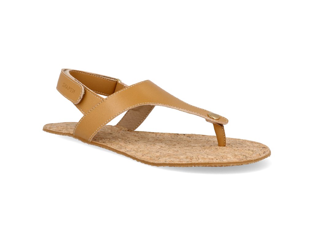 Shapen Barfuß Damensandalen - Nomad Camel mit Kork Vegan braun