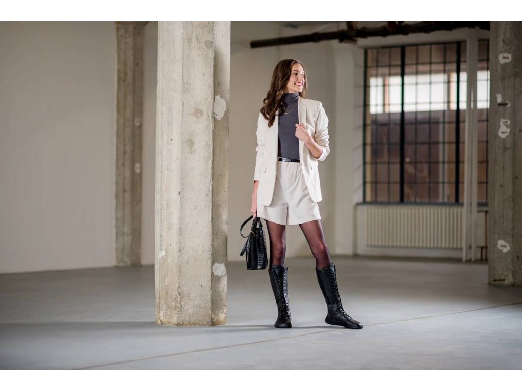 Ahinsa Barfuß Damen Stiefel - Jaya Tall Winter mit Reißverschluss schwarz
