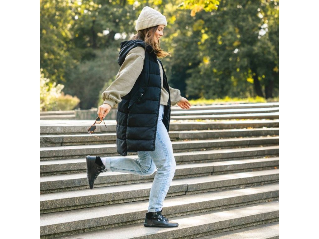 Die Damenstiefeletten gefallen all jenen, die gerne Spaziergänge in der Stadt mit Ausflügen ins Grüne verbinden. Es sind Barfußschuhe, die den härtesten Bedingungen trotzen und dabei bei jedem Schritt bequem und weich bleiben. Die wasserbeständige Membran schützt zuverlässig vor Regen, und der universelle Schnitteignet sich sowohl für den Alltag in der Stadt als auch für Ausflüge in den Wald. Ein Schuh, der zu einem zuverlässigen Begleiter für jede Gelegenheit wird. Dank der Fußbett- Einlegesohle bieten die Schuhe mehr Komfort beim Gehen, dämpfen Stöße effektiv und halten die Füße trocken.