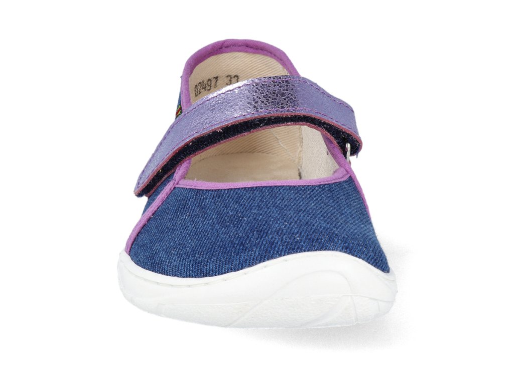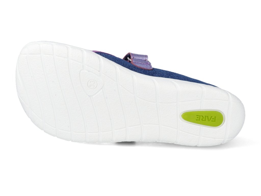 Die Kinderpantoffeln aus der Serie FARE BARE kombinieren ein attraktives Ballerina-Design mit einer durchdachten Konstruktion, die die natürliche Entwicklung des Fußes unterstützt. Dank der flexiblen Thermo-Gummisohle, dem weichen Textil-Obermaterial und der zusätzlichen Zehenfreiheit sind sie bequem für den Alltag zu Hause und in der Schule.