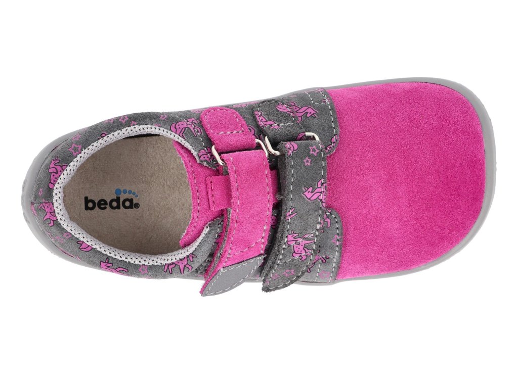 Beda Barfuß Kindersneaker - Einhorn rosa mit fester Fersenkappe