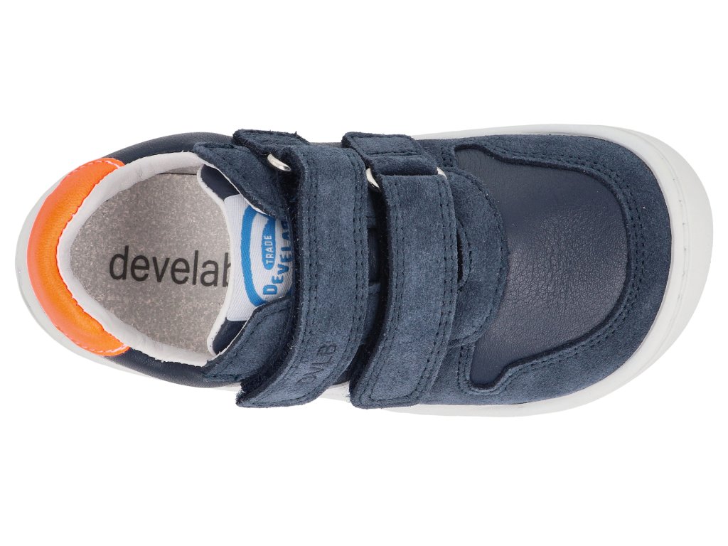 Develab Barfuß Kindersneaker – Firststep Sneaker 2Velcro Navy, blaues Rauleder