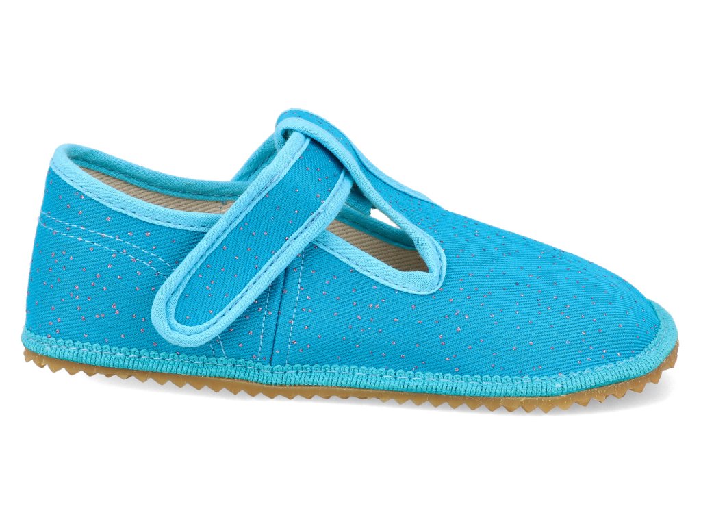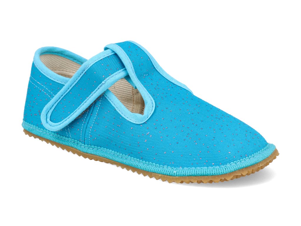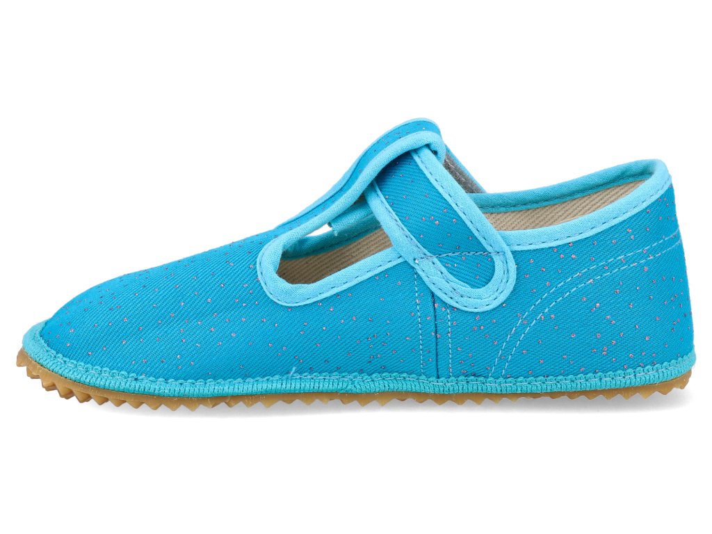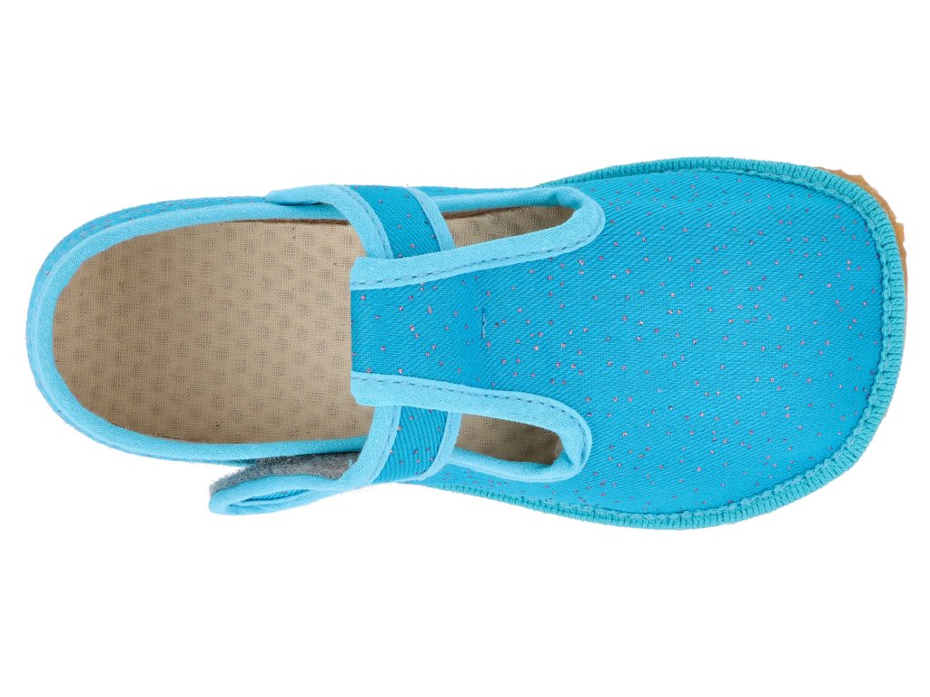 Beda Barfuß Kinderhausschuhe - turquoise shine türkis breiterer Typ