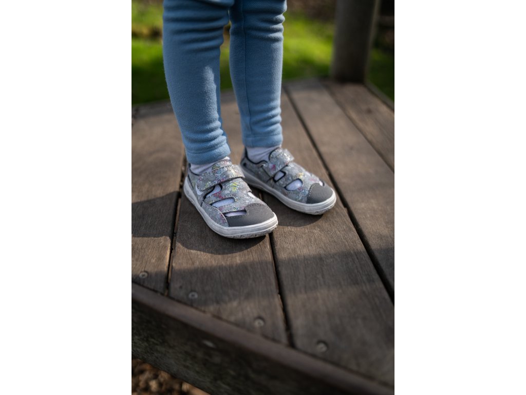 Jonap Barfuß Kindersandalen - Danny Schmetterlinge grau