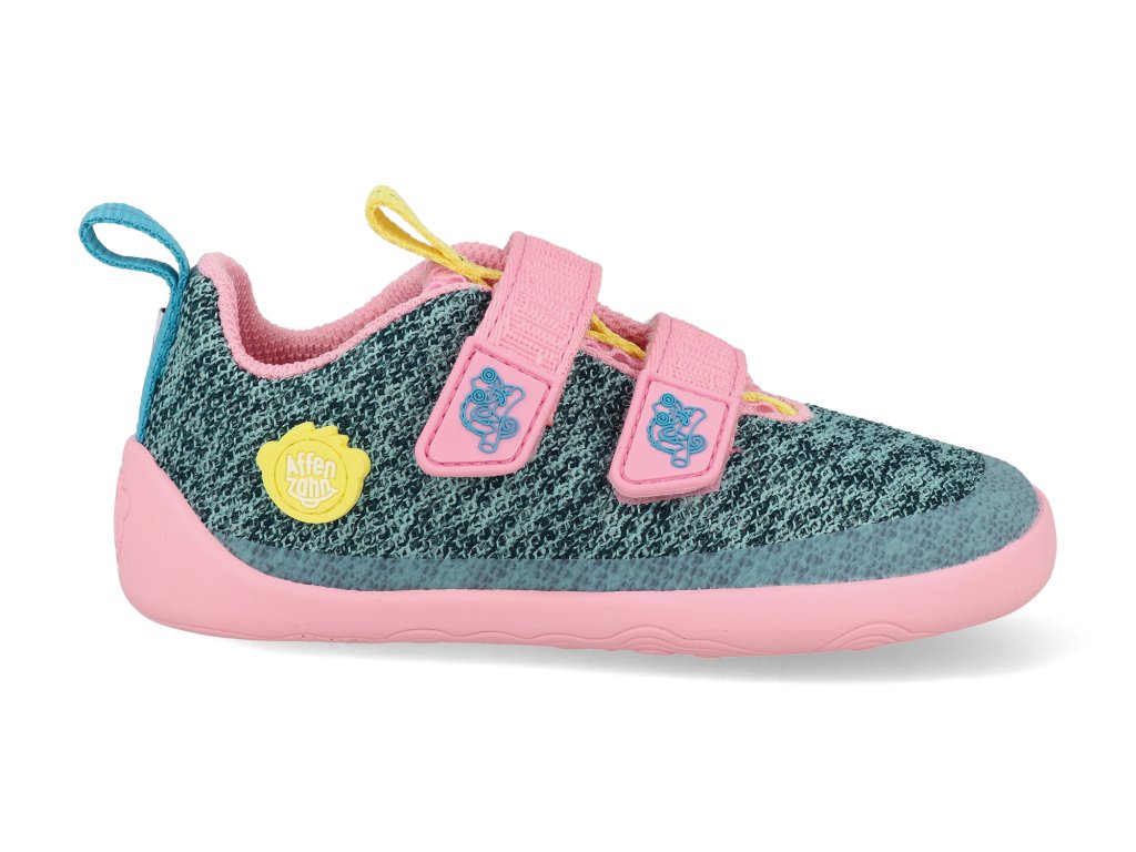 Affenzahn Barfuß Kindersneaker – Sneaker Knit Happy Chamäleon grün-rosa