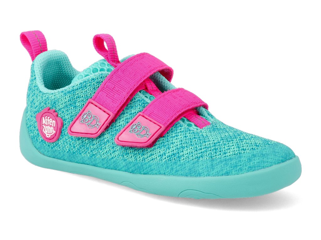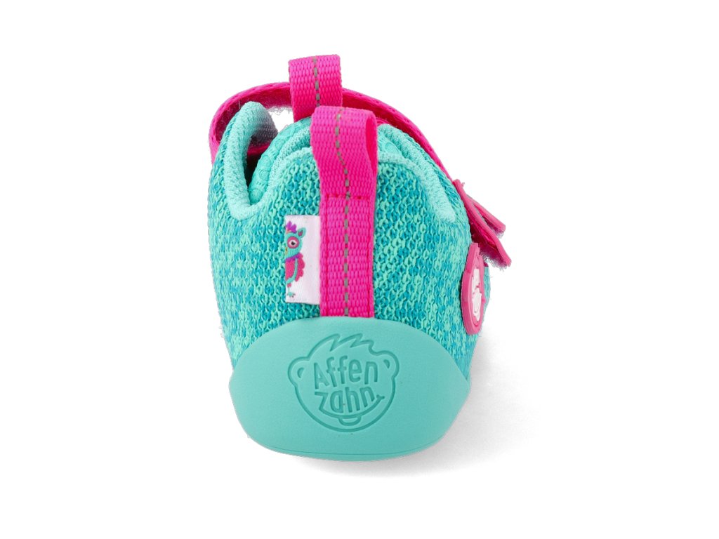 Affenzahn Barfuß Kindersneaker - Sneaker Knit Happy-Owl vegan türkis