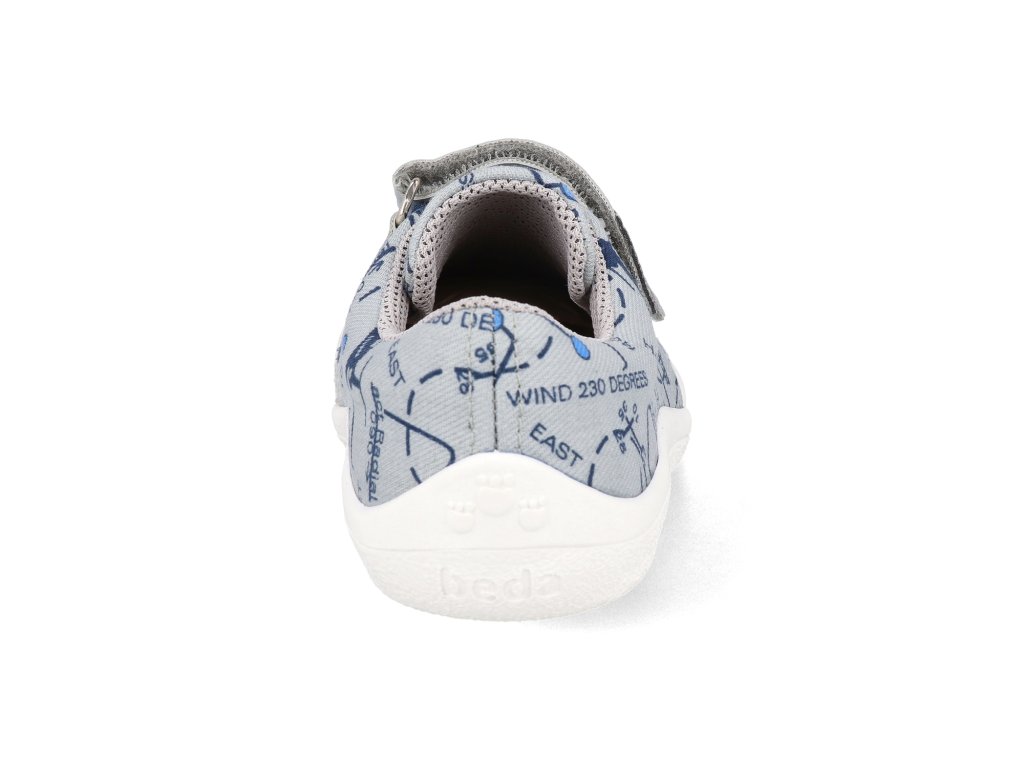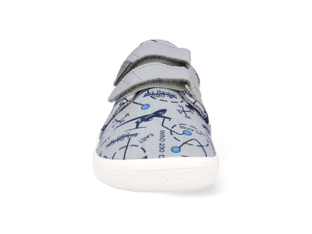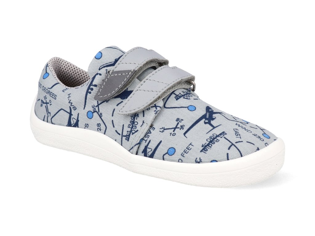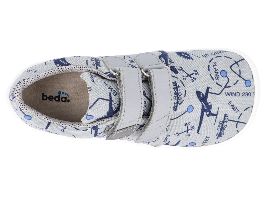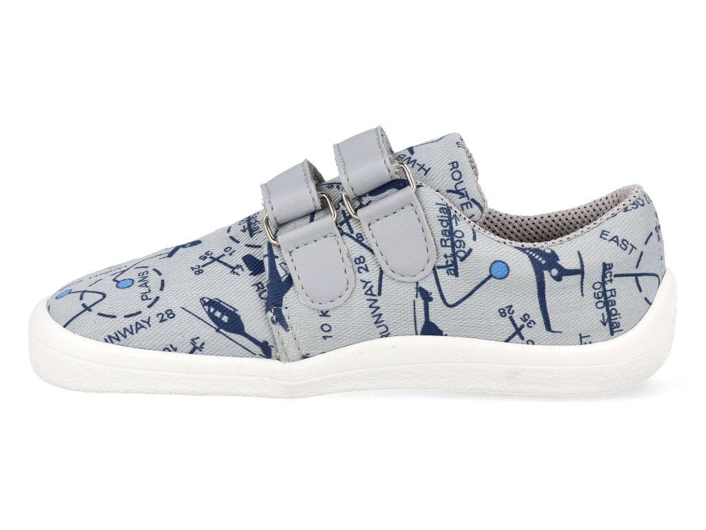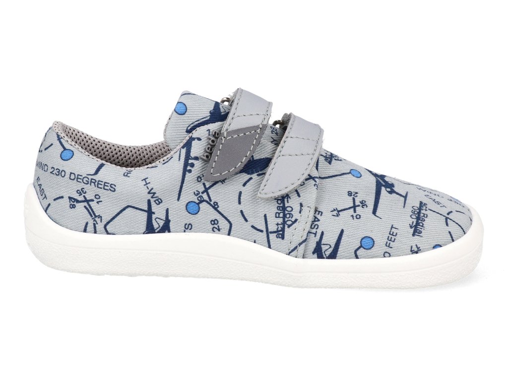 Beda Barfuß Kindersneaker - Graue Flugzeuge Textil mit fester Fersenkappe Vegan