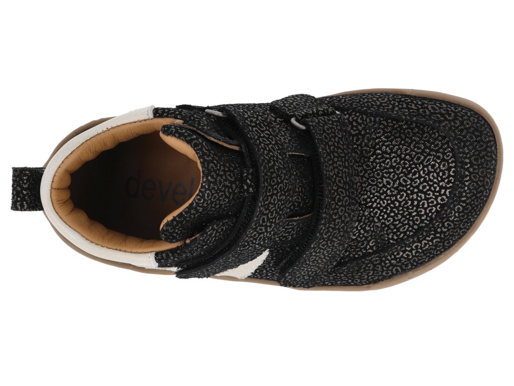 Develab Barfuß Kinderstiefeletten - Midcut Sneak. 2 Black Combi schwarz Glitter