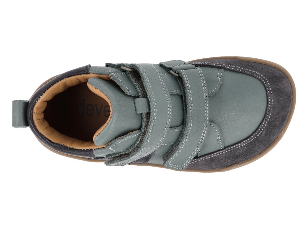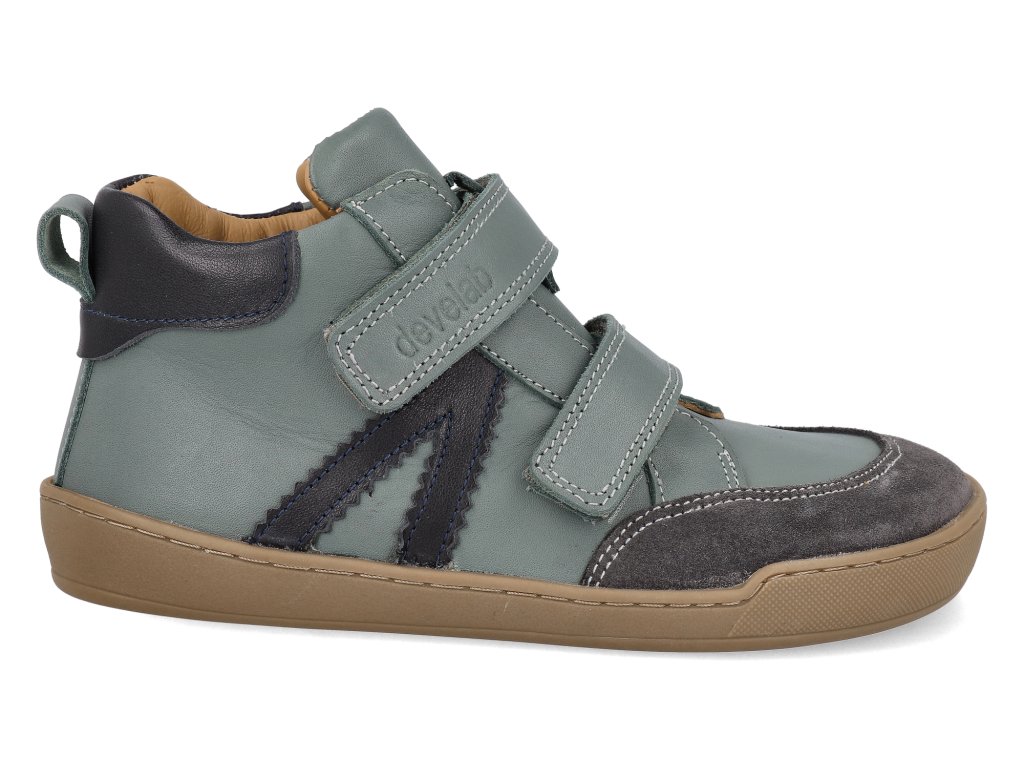 Develab Barfuß Kinderstiefeletten - Midcut Sneak. 2Velcro leath Forest grün