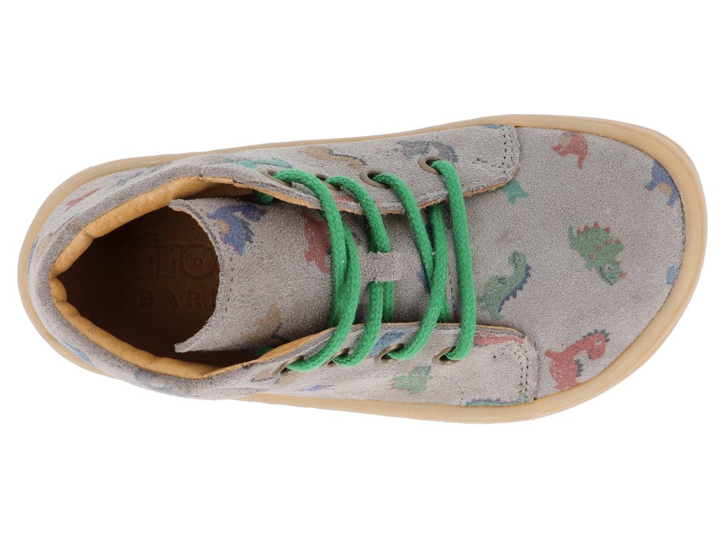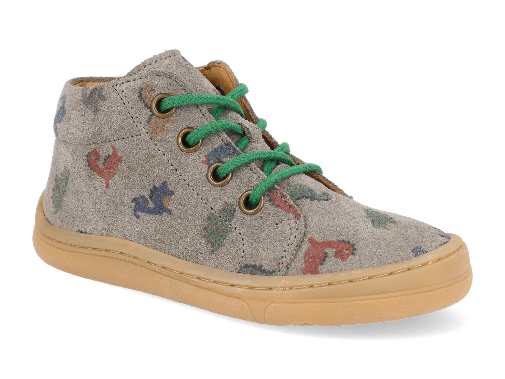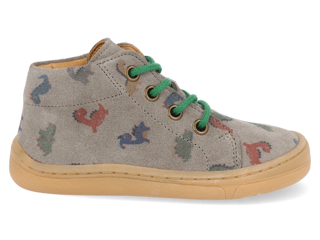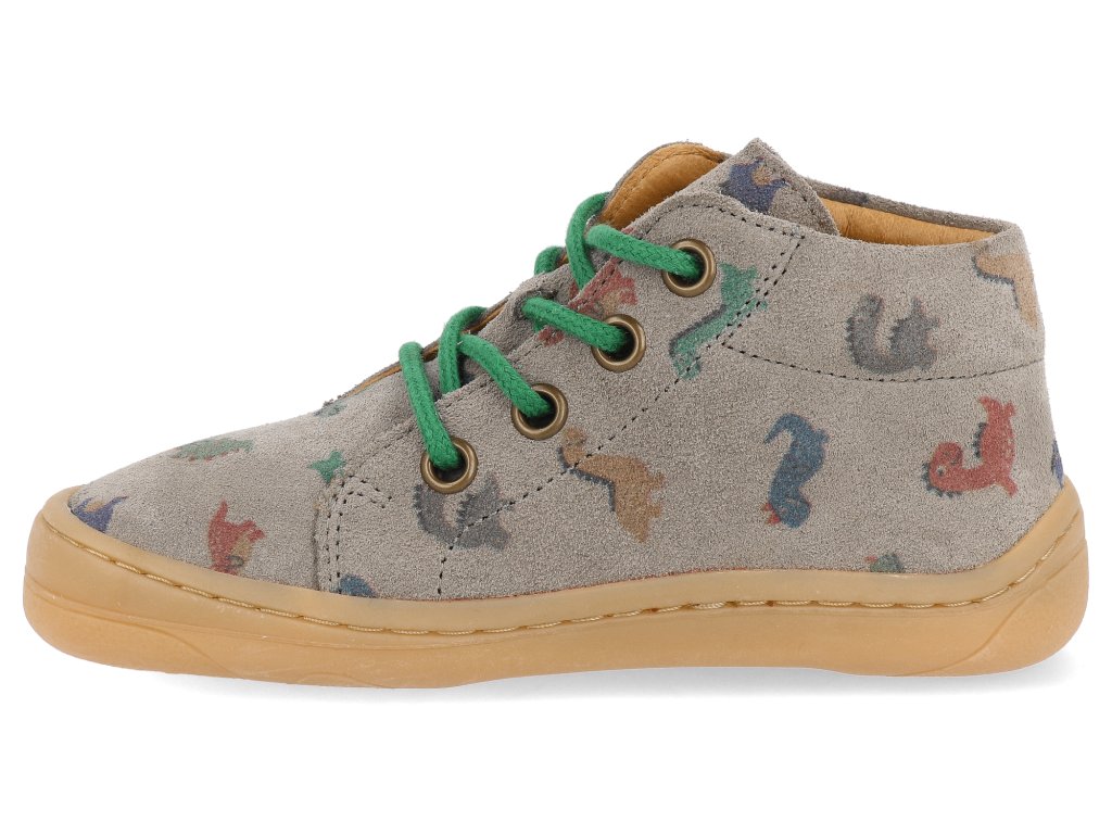 Froddo Barfuß Kinder Halbschuhe - First Step Laces Grey Dinosaurier