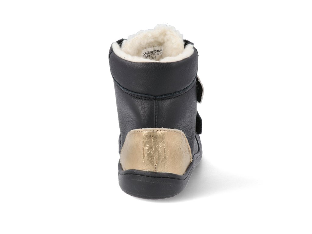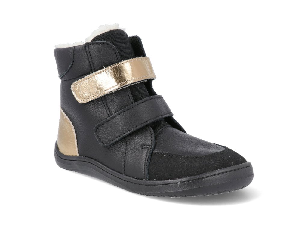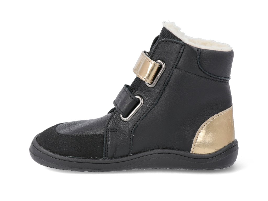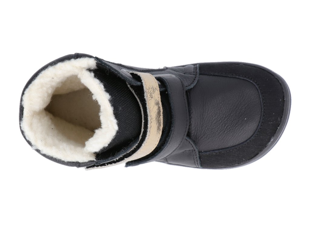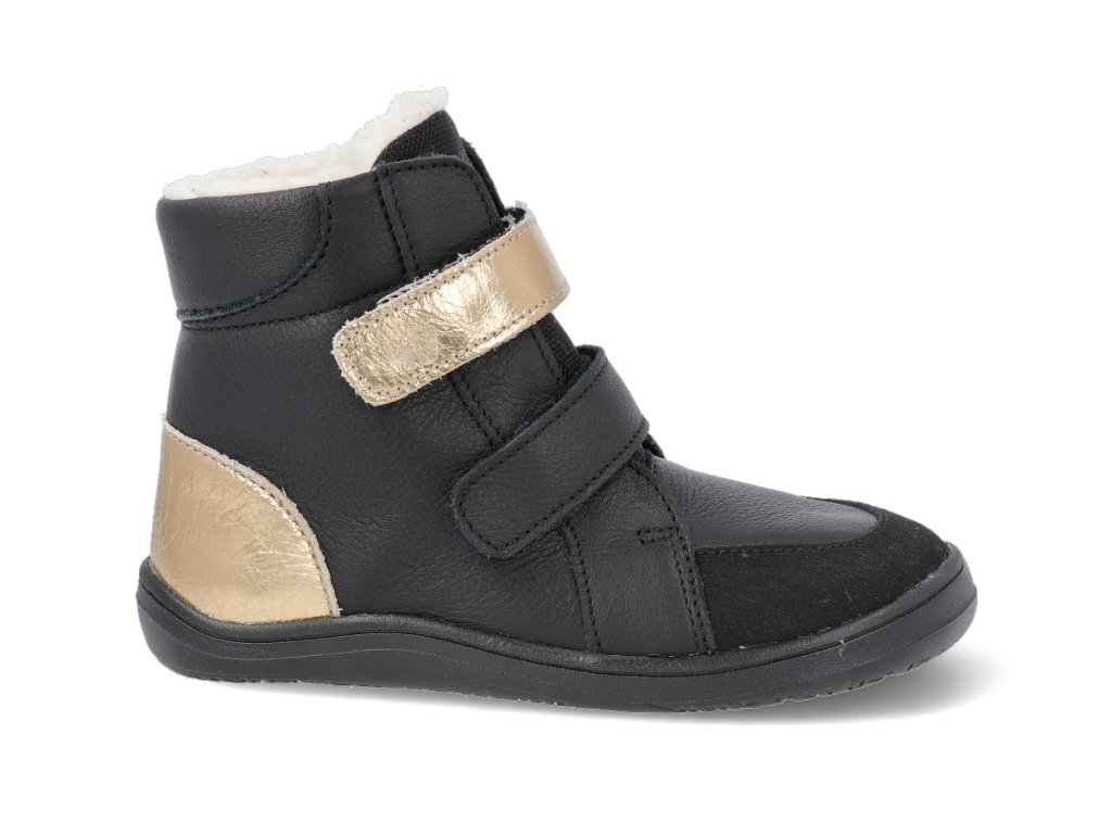 Baby Bare Barfuß Winterschuhe - Febo Winter Schwarz/Gold Asfaltico schwarz