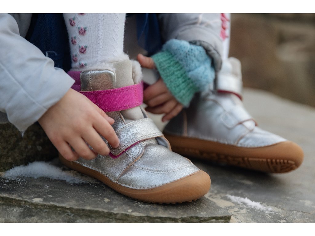 Die Kinder-Winterstiefel aus Leder sorgen für Wärme und Komfort auch an frostigen Tagen. Das Futter aus weichem Fell hält die Füße angenehm warm, während das Obermaterial aus hochwertigem Leder sowohl vor Feuchtigkeit als auch vor Kälte schützt. Die flexible Laufsohle fördert die natürliche Bewegung und sorgt für ein sicheres Laufgefühl, sodass die Schuhe sowohl für Winterabenteuer als auch für den Alltag geeignet sind.