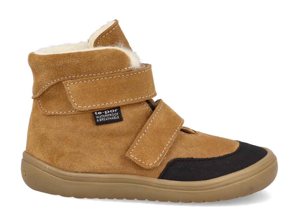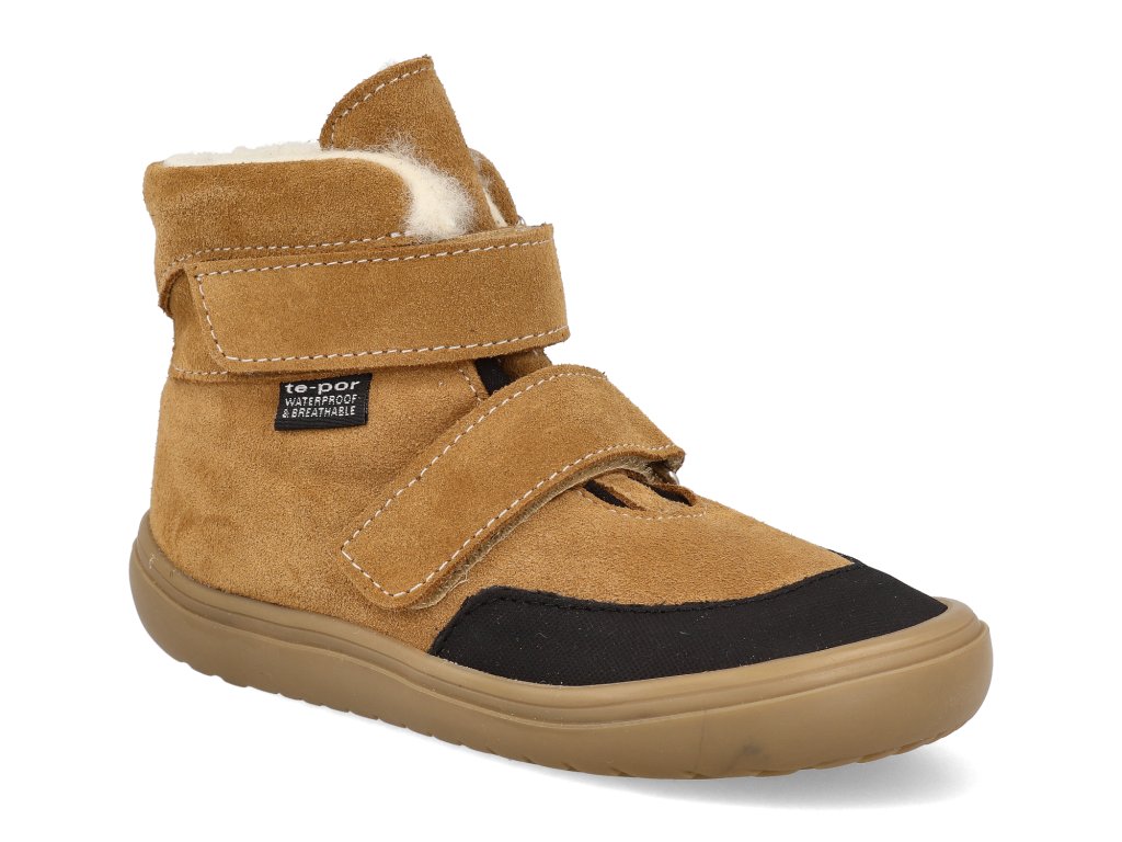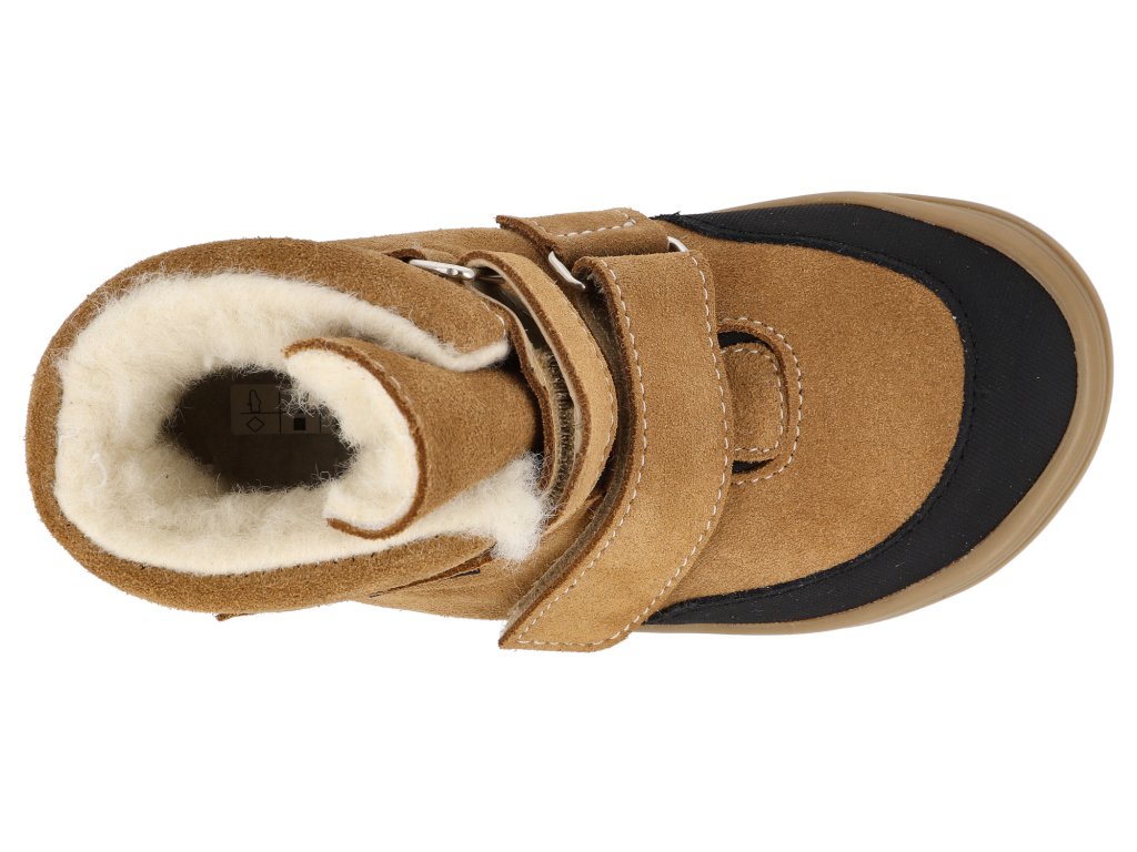 Die Winterstiefeletten aus Leder für Kinder sind für den strengen Winter gerüstet. Das Futter aus Schafwolle hält die Füße auch bei eisigen Temperaturen warm, während die integrierte Tepor-Membran zuverlässig verhindert, dass Feuchtigkeit in den Schuh eindringt, und gleichzeitig für Atmungsaktivität sorgt. Rauleder ist von Natur aus wasserabweisend und nach einer Imprägnierung sind die Schuhe auch für Schnee und matschiges Gelände geeignet. Die breite Zehenbox bietet den Kinderfingern ausreichend Platz für natürliche Bewegungen, und dank der beiden Klettverschlüsse lassen sich die Schuhe leicht anziehen und sitzen gut am Fuß.
