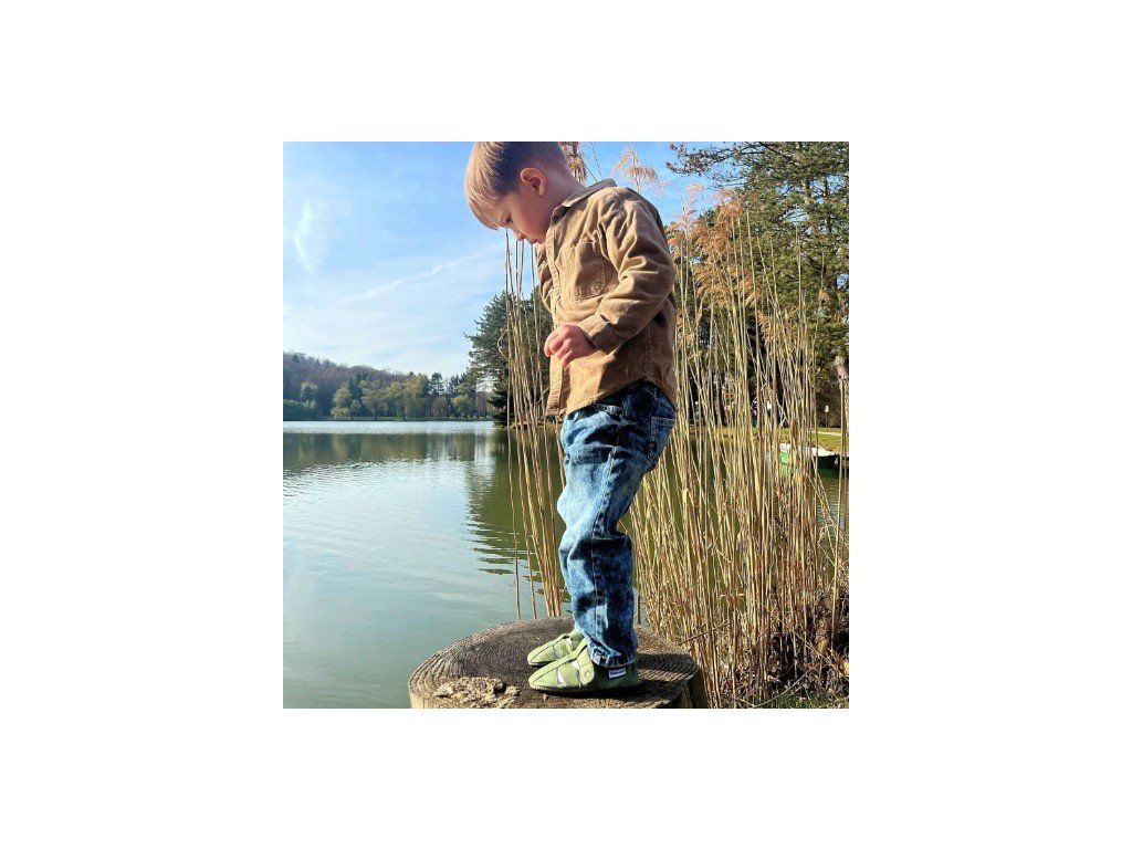 Die Babyschuhe sind ideal für Kinder, die gerade anfangen zu laufen und die Welt um sich herum entdecken. Sie bestehen aus weichem, glattem Leder, das sich auf natürliche Weise an den Kinderfuß anpasst und für maximalen Komfort sorgt. Die Sohle ist dünn und flexibel, sodass sie das Barfußgefühl und die natürliche Bewegung fördert. Dank ihrer leichten Bauweise sind die Babyschuhe bequem zu tragen und schränken die Schritte des Kindes nicht ein. Die praktische Konstruktion im Knöchelbereich sorgt dafür, dass die Schuhe gut am Fuß sitzen und sich gleichzeitig leicht anziehen lassen.