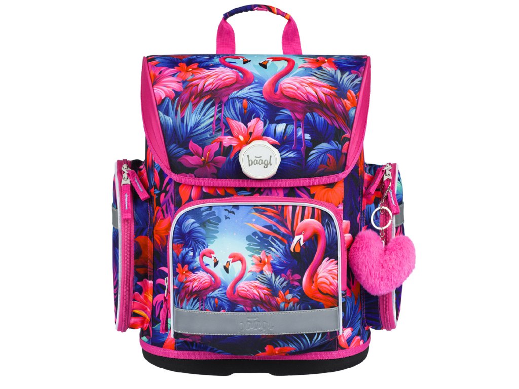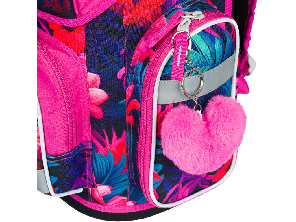 - die Schultasche ist mit einem trendigen Anhänger ausgestattet