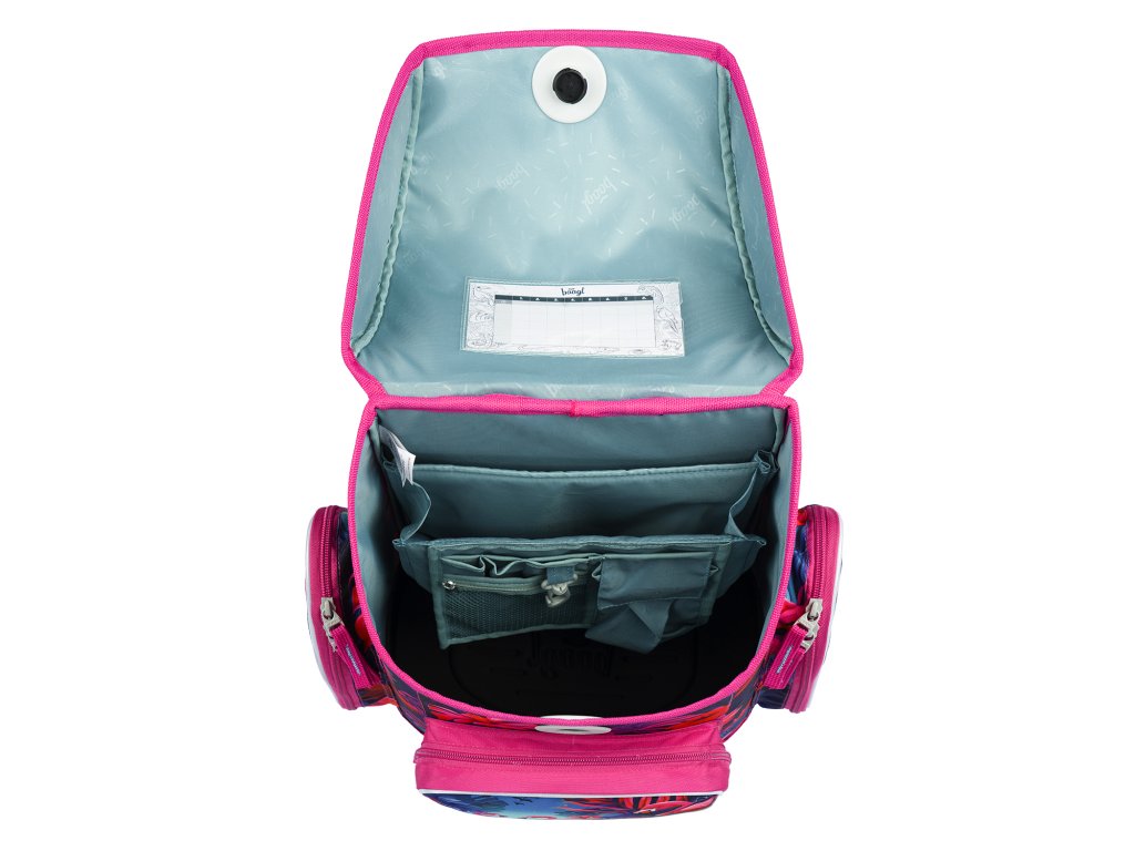 - Im Inneren des Schulranzens befindet sich eine transparente Tasche mit einem Stundenplan und einem internen Organizer für eine gleichmäßige Gewichtsverteilung