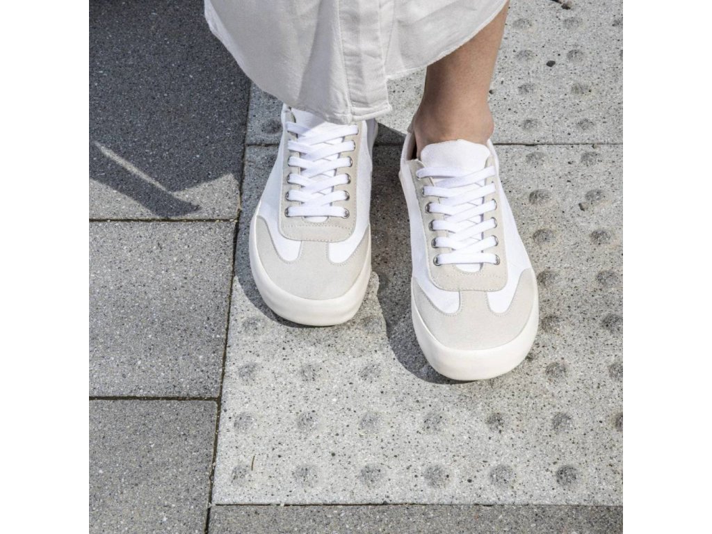 Bohempia Barfuß Canvas Damensneaker – Felix White tan weiß/hellgrau