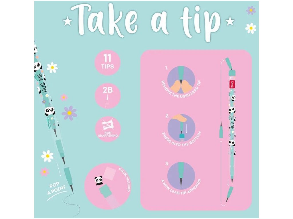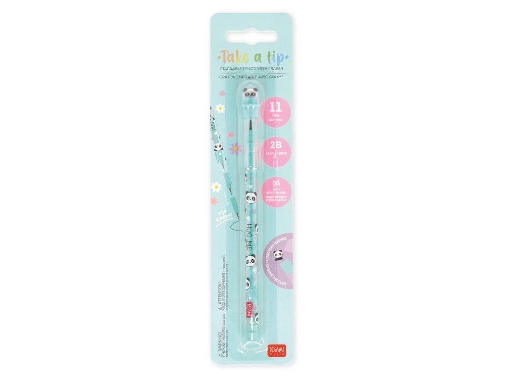 Stimmen Sie zu, dass zwei Stifte besser sind als einer? Und was erst elf! Genau so viele austauschbare Spitzen verbirgt der Legami Stackable Pencils Panda. Kein Suchen nach einem Spitzer mehr, einfach die Spitze austauschen und weiterschreiben. Ein fröhlicher, bunter und praktischer Stift, der jedes Kind zu Hause und in der Schule erfreut.